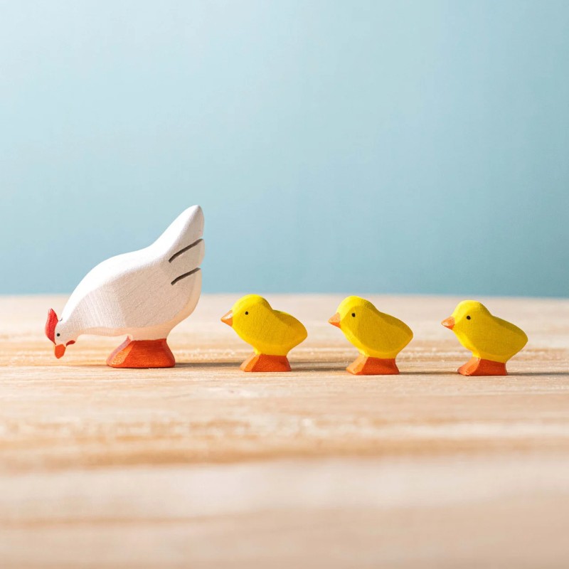 Auf dem rumänischen Land arbeitet die Familie Bumbu hart von Hand. Das Holz aus der Gegend wird gekonnt und liebevoll zu den schönsten Holzspielzeugen geformt. Dieses weiße Huhn von Bumbu Toys ist Teil der Tierkollektion und passt gleichzeitig perfekt in ein Wald- oder Bauernhofthema. Das macht auch Spaß, wenn du zum Beispiel zu Hause mit einem Natur- oder Jahreszeitentisch arbeitest. Kinder lieben es, mit Tieren und verschiedenen Naturelementen zu spielen. Dieses Spielzeugtier ist handgefertigt, einzigartig und mit ungiftiger Farbe bemalt.